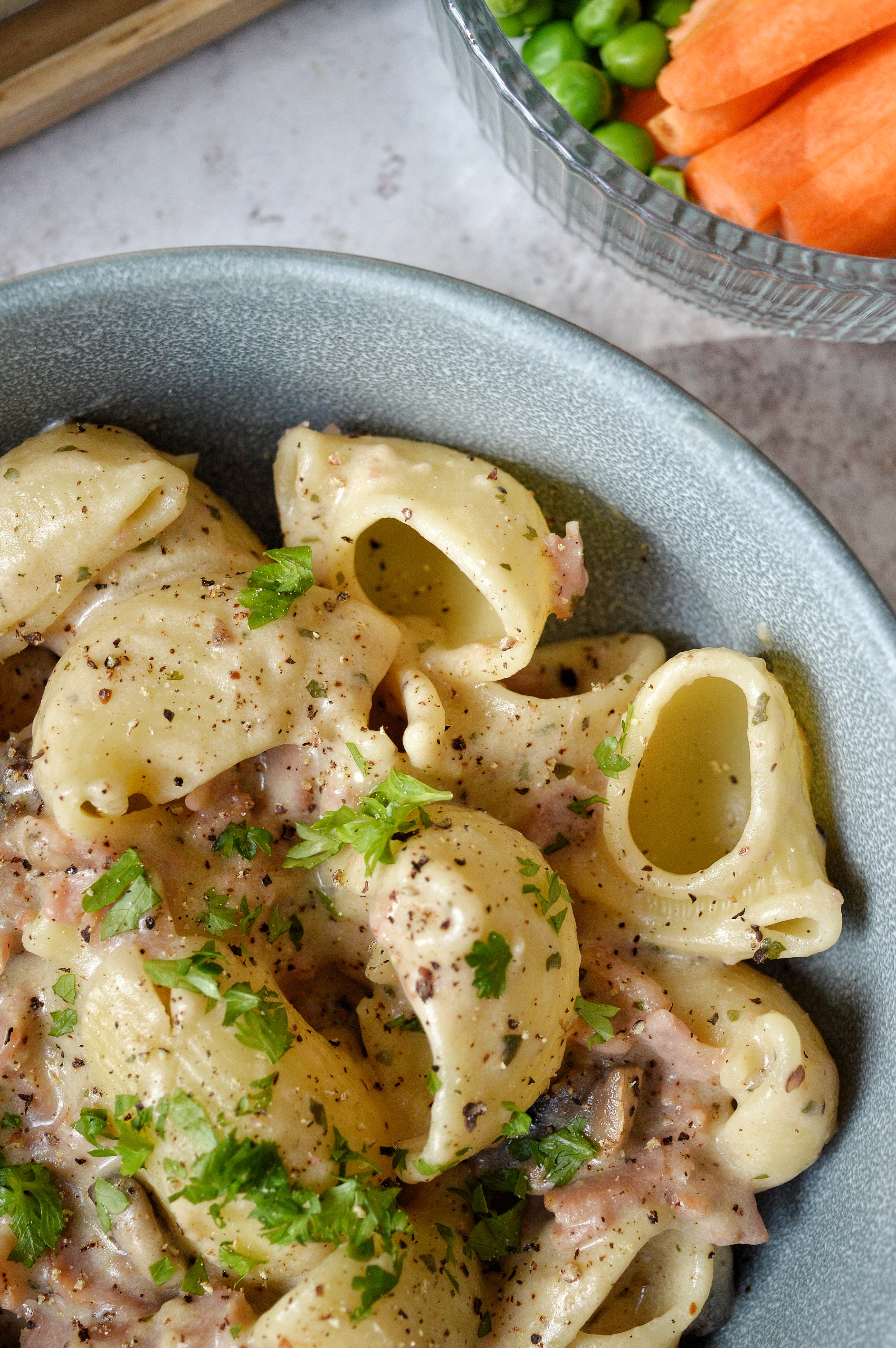 Veckans matlådetips med tema krämig pasta fortsätter, denna vecka en variant av en baconsås med smak av vitlök och svamp 😊