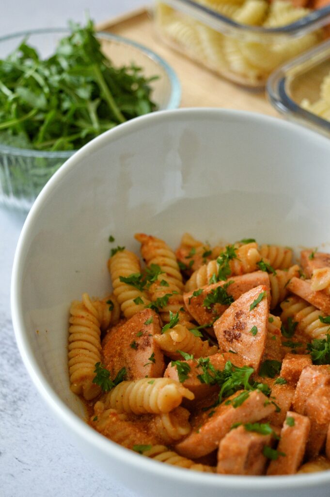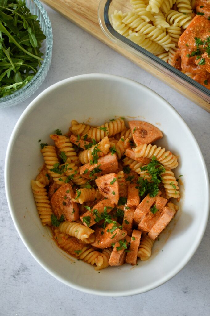 Dock gjorde jag ett stort misstag som jag egentligen vet att man aldrig ska göra, men i stundens hetta så blev det så vilket gjorde att såsen skar sig och den kunde jag inte göra om då jag inte hade mer av vissa ingredienser 🫣 Det jag missade på var att vara försiktig med magra mejeriprodukter när det kommer till en tomatbaserad sås och låta det stå kvar på en för varm platta! Så använder du magra mejeriprodukter, gör klart allt annat och ha i mejeriprodukten allra sist och ta bort pannan/kastullen från plattan alt superlåg värme en kort stund 👌